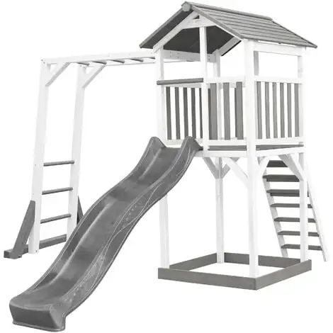 Des heures de jeu en perspective! Voici une structure de jeu comme à la plage, ouverte sur le monde à 360 degrés. En bois de Hemlock , un bois très résistant, naturellement imputrescible, insensible aux champignons et insectes. Bois non-traité chimiquement, donc plus écologique et plus sur pour les enfants.100% FSC , donc en provenance de forêts gérées selon des principes de développement durable . Facile à construire en raison de l’utilisation de panneaux pré-percés prêts à l’emploi et déjà peint et traités avec un vernis à base aqueuse non chimique. Garantie 10 ans !!