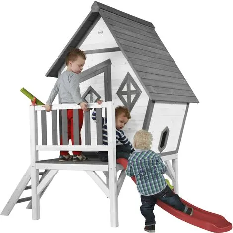 Les enfants adorent jouer avec leurs amis dans la cabane en bois Cabin XL Playhouse Gris/blanc d’AXI. Monter sur l’échelle, sur la véranda et descendre rapidement le toboggan. Plus ils glissent vers le bas, plus ils aiment ça ! À travers les fenêtres et la porte inclinées, la maison de jeu a l’air si accueillante et amusante qu’elle semble sortir d’un conte de fées. Au fond de la maison, il y a même une petite fenêtre. Cela permet à vos enfants de garder secrètement un œil sur le quartier. Cabin XL est une maison de jeu polyvalente en bois de la série Beach de AXI.