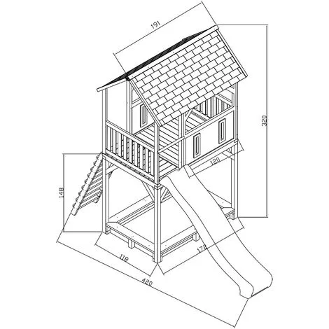 - Caractéristiques: Maisonnette, Bac à sable