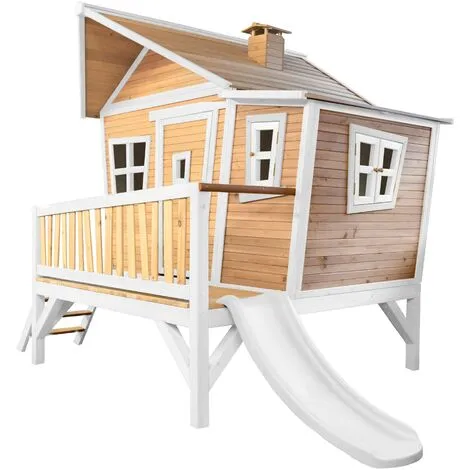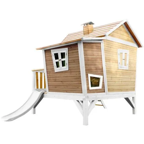 Vos enfants vont jouer pendant des heures en toute sécurité avec la maisonnette sur pilotis Emma d’AXI. Son design « en biseau » est unique !