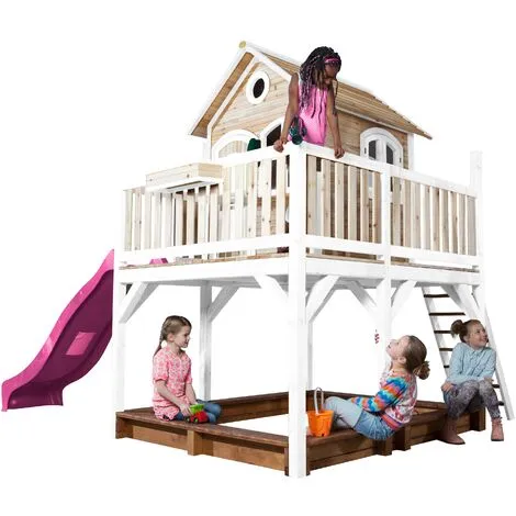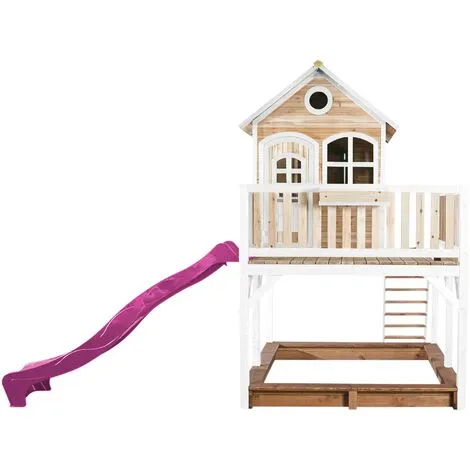 AXI Liam Maison Enfant Avec Bac à Sable & Toboggan Violet | Aire De Jeux Pour L’extérieur En Marron & Blanc | Maisonnette / Cabane De Jeu En Bois FSC – Marron