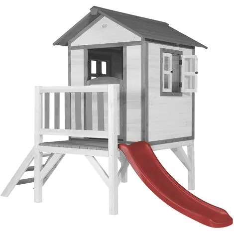 AXI Maison Enfant Beach Lodge XL En Blanc Avec Toboggan En Rouge | Maison De Jeux En Bois FFC Pour Les Enfants | Maisonnette / Cabane De Jeu Pour Le Jardin – Blanc