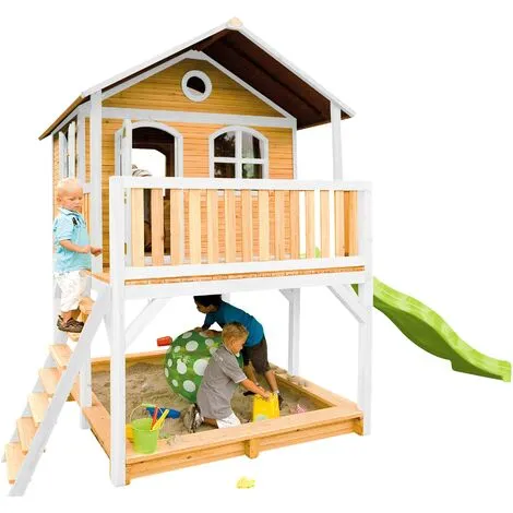 AXI Marc Maison Enfant Avec Bac à Sable & Toboggan Vert Clair | Aire De Jeux Pour L’extérieur En Marron & Blanc | Maisonnette / Cabane De Jeu En Bois FSC – Marron