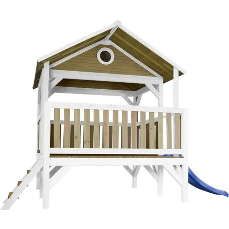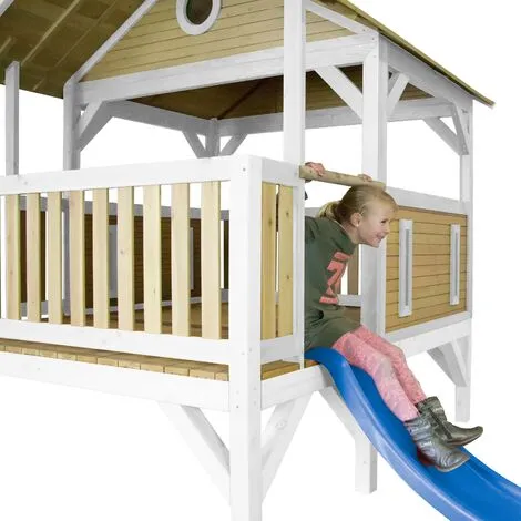 AXI Meeko Maison Enfant Avec Toboggan Bleu | Aire De Jeux Pour L’extérieur En Marron & Blanc | Maisonnette / Cabane De Jeu En Bois FSC – Marron