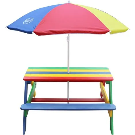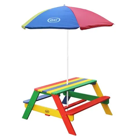 Laissez vos enfants s’asseoir confortablement à la table Nick Picnic d’AXI. Lorsque le soleil commence à briller, ils peuvent chercher un abri sous un parasol réglable en hauteur. Cette table de pique-nique est réalisée dans de belles couleurs de bois naturel et s’adapte donc bien à tout intérieur ou jardin. Il y a suffisamment d’espace à la table de pique-nique pour asseoir quatre enfants en même temps. De cette façon, ils peuvent créer, dessiner ou profiter de friandises ensemble.