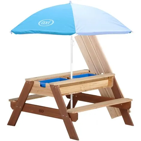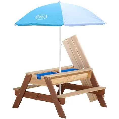 La table de pique-nique Sable et Eau Nick , d’ AXI , est une table de pique-nique multifonctionnelle. Nick a une pièce secrète avec deux bacs bleus sous le plateau amovible. Ces bacs bleus peuvent être remplis de sable et / ou d’eau, mais vous pouvez également y stocker des jouets. De plus, les bacs sont amovibles, ce qui facilite leur nettoyage. La combinaison classique de sable et d’eau rencontre toujours le même succès auprès des enfants! Jeu terminé ? En un rien de temps, vous transformez cette table en une table de pique-nique où les enfants peuvent créer, dessiner ou savourer des gourmandise.