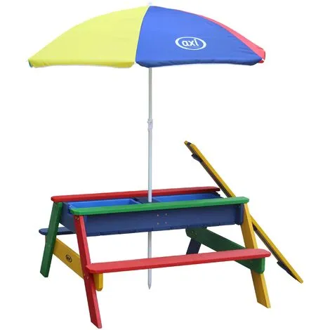 La table de pique-nique Sable et Eau Nick , d’ AXI , est une table de pique-nique multifonctionnelle. Nick a une pièce secrète avec deux bacs bleus (capacité: 8 litres chacun) sous le plateau amovible. Ces bacs bleus peuvent être remplis de sable et / ou d’eau, mais vous pouvez également y stocker des jouets. De plus, les bacs sont amovibles, ce qui facilite leur nettoyage. La combinaison classique de sable et d’eau rencontre toujours le même succès auprès des enfants! Jeu terminé ? En un rien de temps, vous transformez cette table en une table de pique-nique où les enfants peuvent créer, dessiner ou savourer des gourmandises.