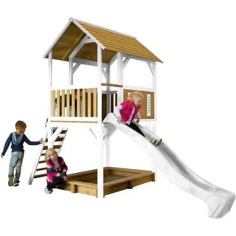 AXI Pumba Maison Enfant Avec Bac à Sable & Toboggan Blanc | Aire De Jeux Pour L’extérieur En Marron & Blanc | Maisonnette / Cabane De Jeu En Bois FSC – Marron