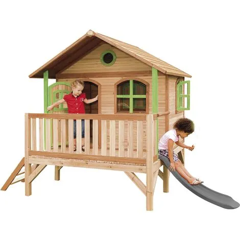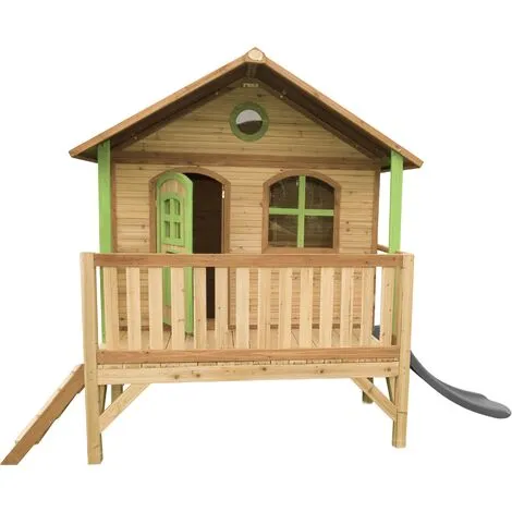 AXI Stef Maison Enfant Avec Toboggan Gris | Aire De Jeux Pour L’extérieur En Marron & Vert | Maisonnette / Cabane De Jeu En Bois FSC – Marron