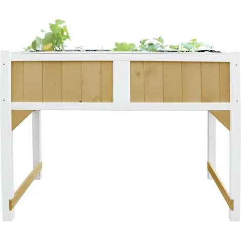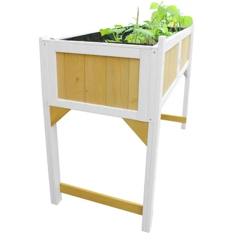 La table de culture en bois et la couleur blanche est l’ajout parfait à tout jardin ou balcon. Dans ce planteur élevé chaque jardinier passe-temps pousse un légume ou jardin d’herbes aromatiques avec facilité! Désormais, votre mini-jardin sera parfaitement protégé contre les escargots et les mauvaises herbes. L’intérieur de la table de croissance est recouvert d’une feuille perforée, de sorte que la construction en bois est protégé contre l’humidité et les séjours sol dans le pot. En utilisant des couleurs en bois naturel, le planteur s’adaptera parfaitement partout.