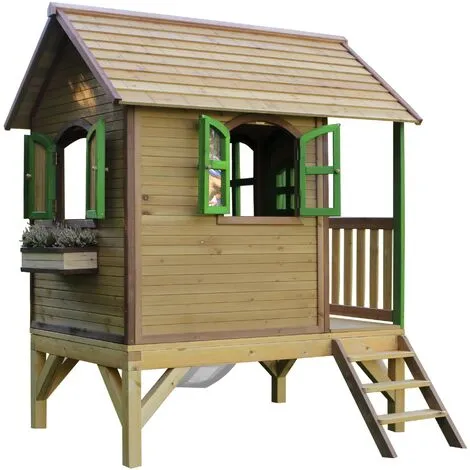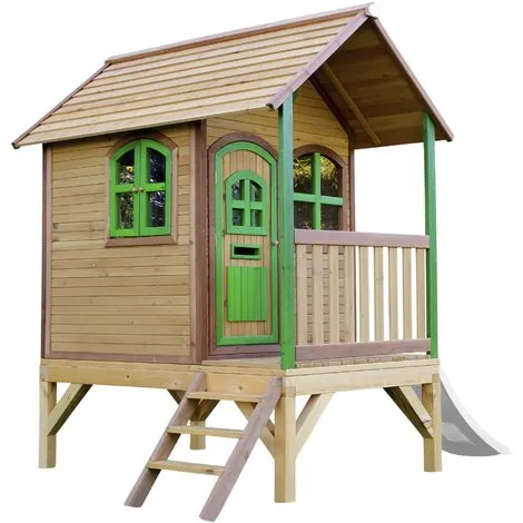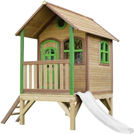 AXI Tom Maison Enfant Avec Toboggan Blanc | Aire De Jeux Pour L’extérieur En Marron & Vert | Maisonnette / Cabane De Jeu En Bois FSC – Marron