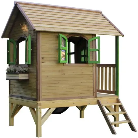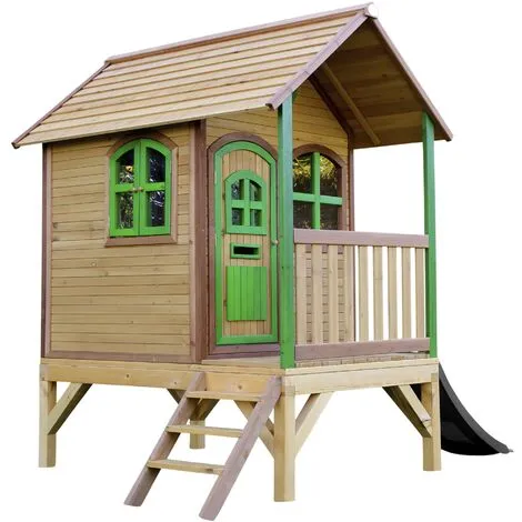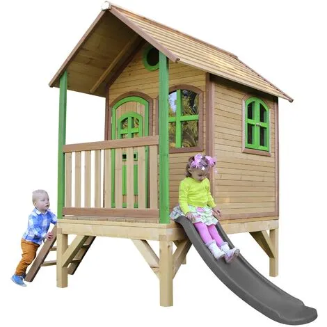 AXI Tom Maison Enfant Avec Toboggan Gris | Aire De Jeux Pour L’extérieur En Marron & Vert | Maisonnette / Cabane De Jeu En Bois FSC – Marron