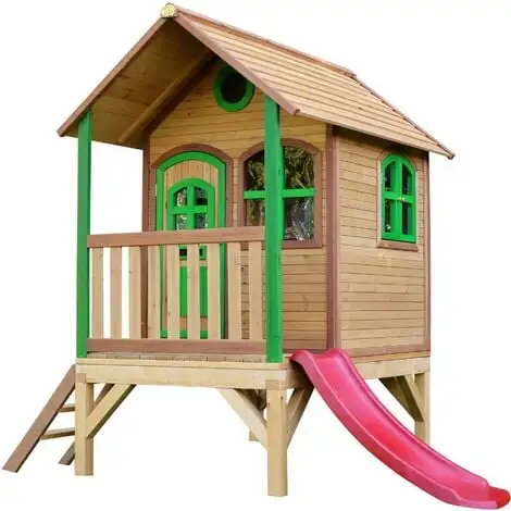 Vos enfants peuvent jouer pendant des heures avec cette maisonnette de grande qualité, fabriquée avec un bois très résistant, naturellement imputrescible, insensible aux champignons et insectes. Bois non-traité chimiquement, donc plus écologique et plus sur pour les enfants: 100% cèdre Cunninghemia lanceolata, panneaux de 15mm, châssis: 38mm. Dimensions au sol: Largeur 287 x profondeur 191 x 231cm (H).