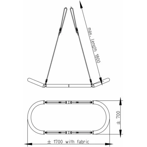 - Dimensions de la balançoire nid : 170 x 70 x 6 cm (L x l x H)
