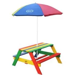 AXI Nick Table Pique Nique Avec Parasol Multicouleur | Table De Jeu Enfant Pour Le Jardin – Bleu